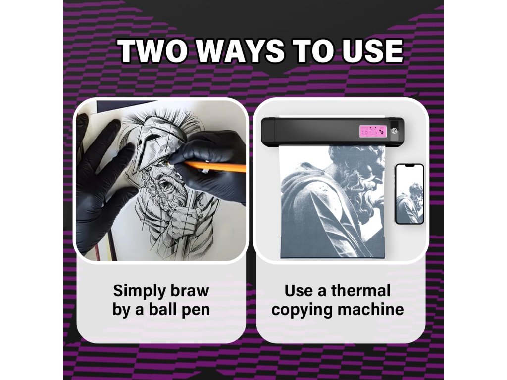 Sposób użycia: Można go używać w kopiarce termicznej lub ręcznie jako papier transferowy idealny dla artystów. Przed przeniesieniem należy nałożyć na skórę pastę transferową. Jeśli chcesz zmienić wzór, możesz przetrzeć ślady tatuażu alkoholem.