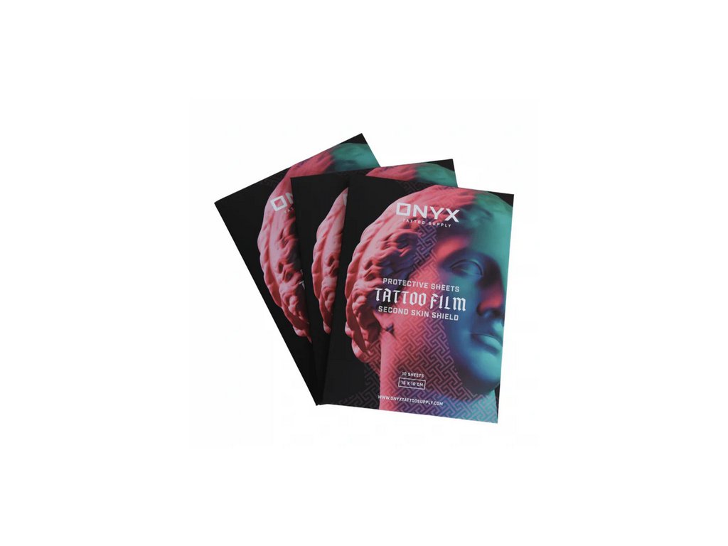 Onyx Second Skin w postaci pojedynczych arkuszy jest przeznaczony do profesjonalnego użytku w studiach tatuażu. Wstępnie przycięty format 15 cm x 10 cm nadaje się do tatuaży o mniejszych i średnich rozmiarach i umożliwia szybką aplikację bez konieczności dodatkowego przygotowania materiału. Folia tworzy barierę ochronną przed czynnikami zewnętrznymi, a jednocześnie zapewnia oddychalność skóry podczas gojenia.