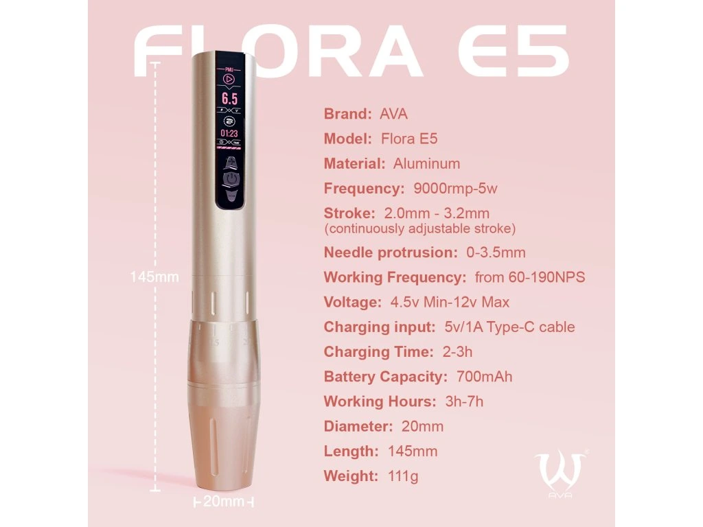 AVA Flora E5 Wireless PMU Pen Set Champagne 2,0 do 3,2 mm skoku