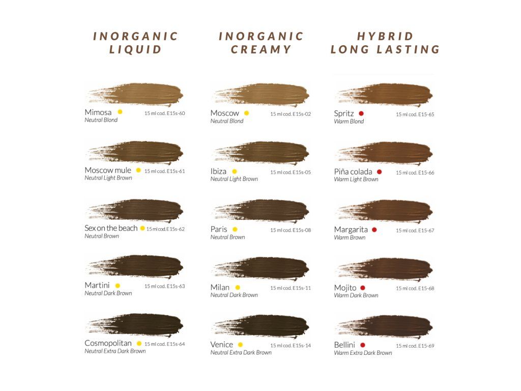 Pigment Biotek Cosmopolitan należy do serii „Inorganic Liquid / Rapid Shading” i oferuje bardzo ciemny brązowy odcień z niemal czarnym efektem i neutralnym podtonem. Jest idealny dla klientów o ciemniejszej karnacji i naturalnie ciemnych włoskach brwi, gdy celem jest efekt pełnego wypełnienia cieniowania bez szarych lub czerwonych tonów po zagojeniu. Formuła jest w 100% nieorganiczna, wyprodukowana we Włoszech, wegańska i nietestowana na zwierzętach. Pigment jest gotowy do natychmiastowego użycia bez konieczności dodawania modyfikatorów czy rozcieńczalników.