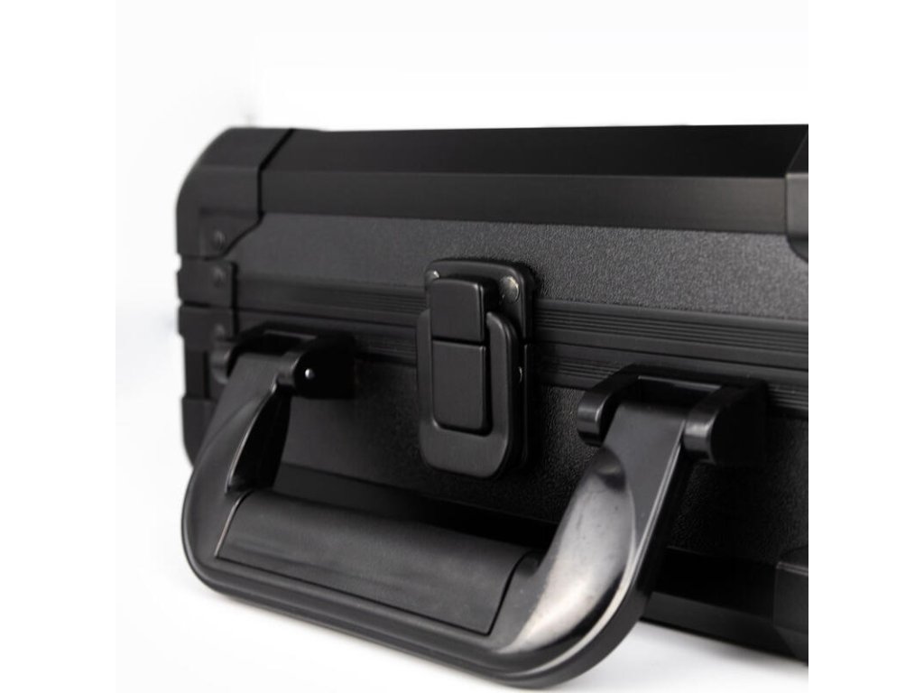 Wysokiej jakości walizka transportowa Critical do przenoszenia maszyn ze wzmocnionymi narożnikami i solidnymi ściankami. Wymiary: szerokość: ok. 254 mm wysokość: ok. 203,2 mm głębokość: ok. 101,6 mm wewnętrzna wyściółka z pianki wzmocnione narożniki i ścianki gumowe nóżki