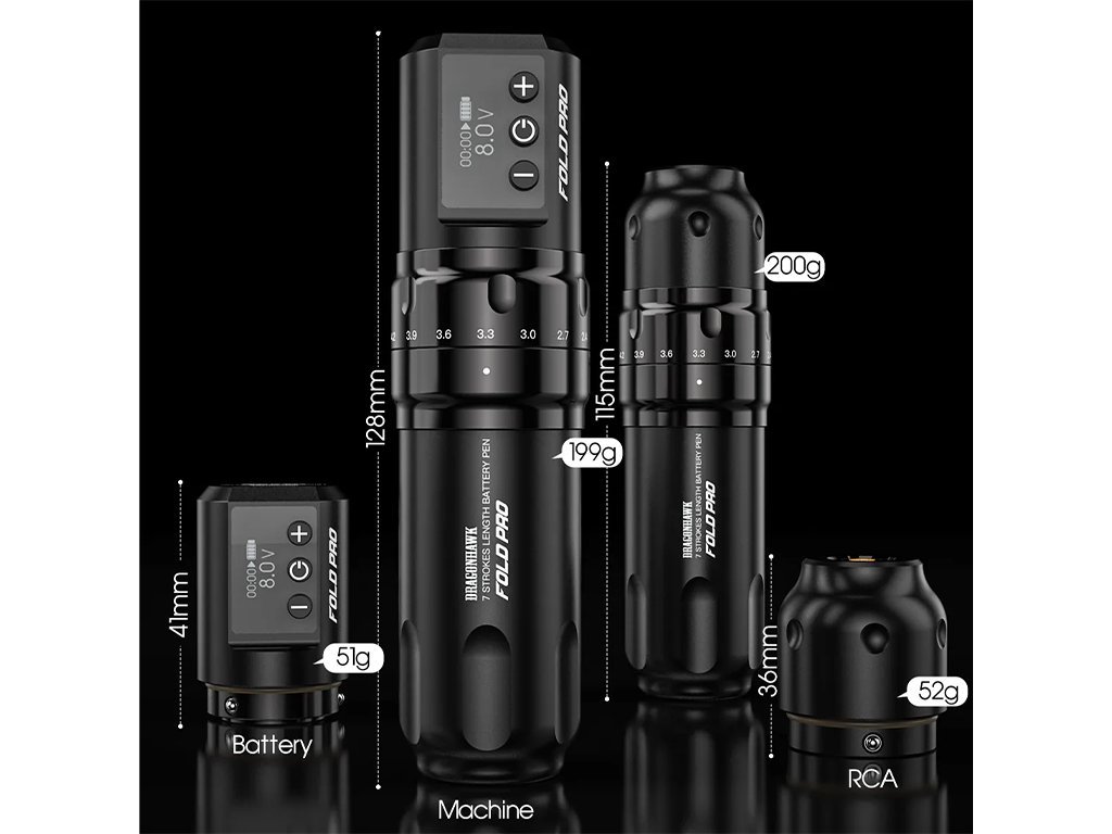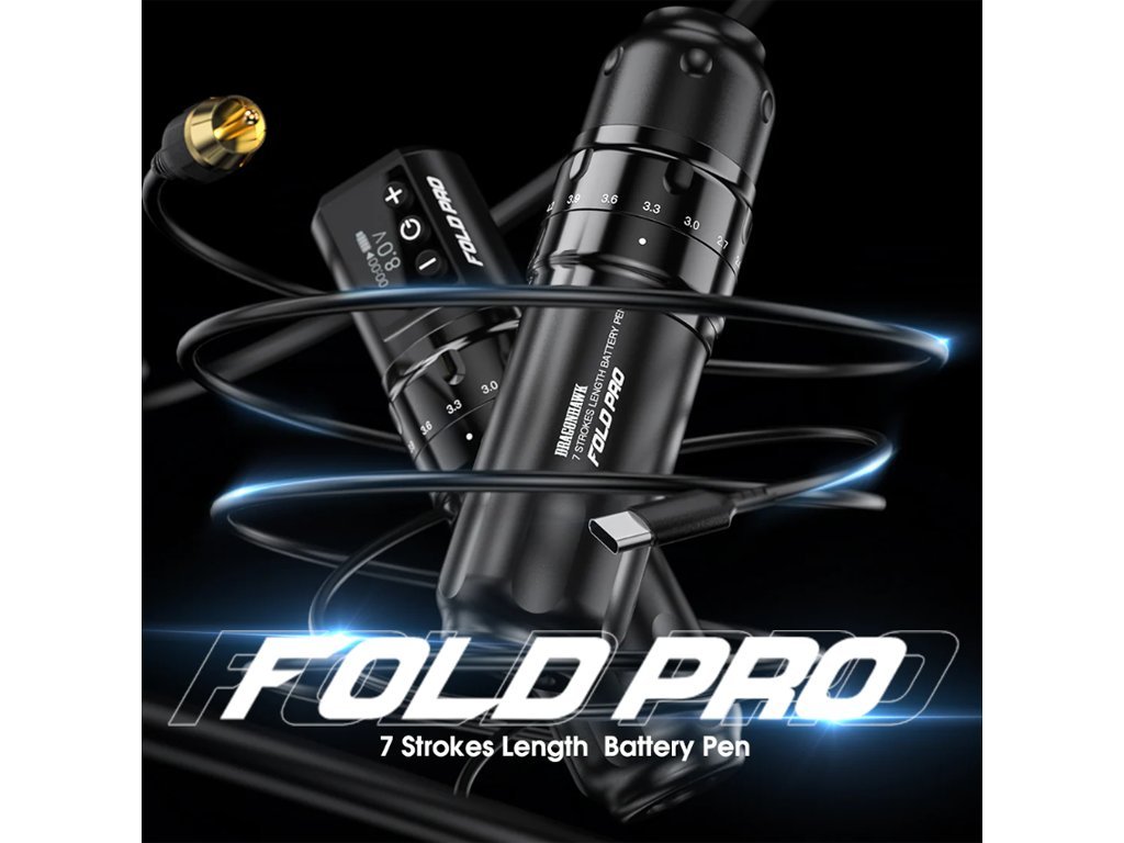 - Fold Pro to bezprzewodowa lub przewodowa maszynka do tatuażu