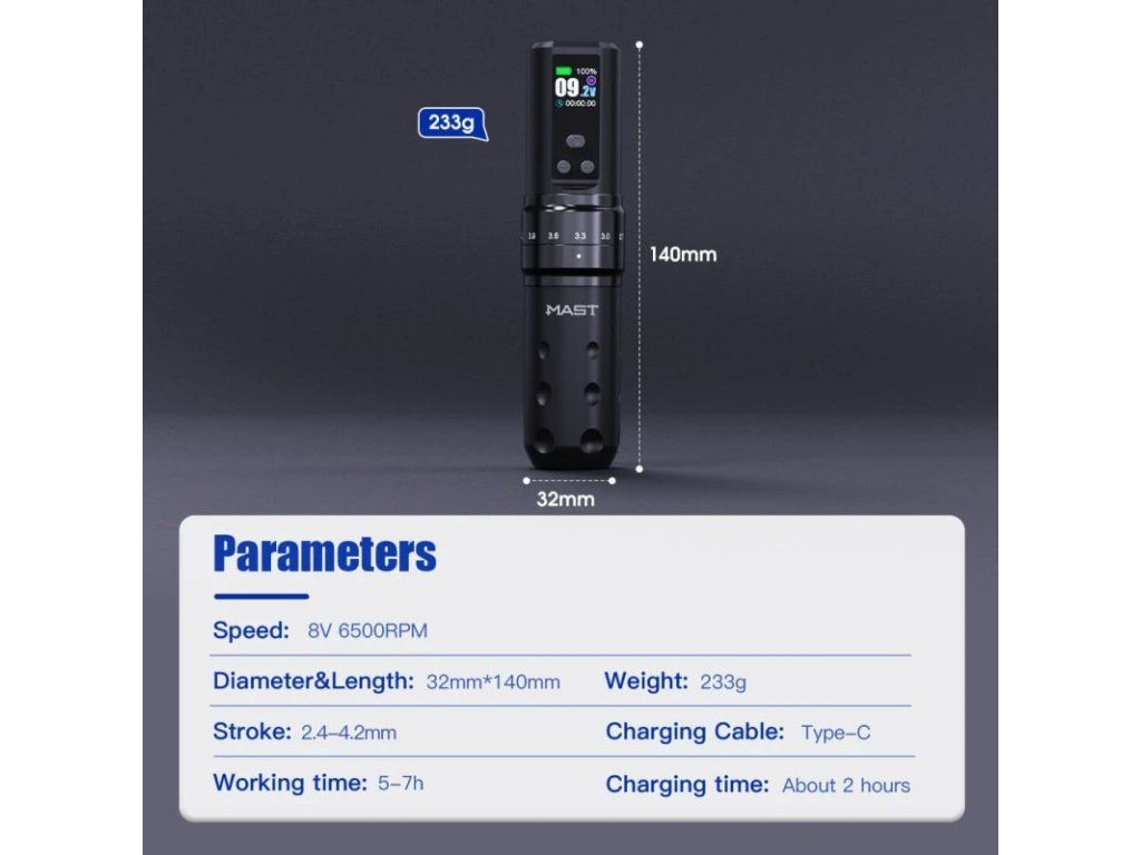 Mast Fold 2 Pro to modułowy system bezprzewodowy przeznaczony do profesjonalnego użytku w studiach tatuażu. Urządzenie łączy w sobie zmienność mechaniczną, stabilną pracę i łatwą obsługę bez konieczności podłączania zewnętrznego źródła zasilania.