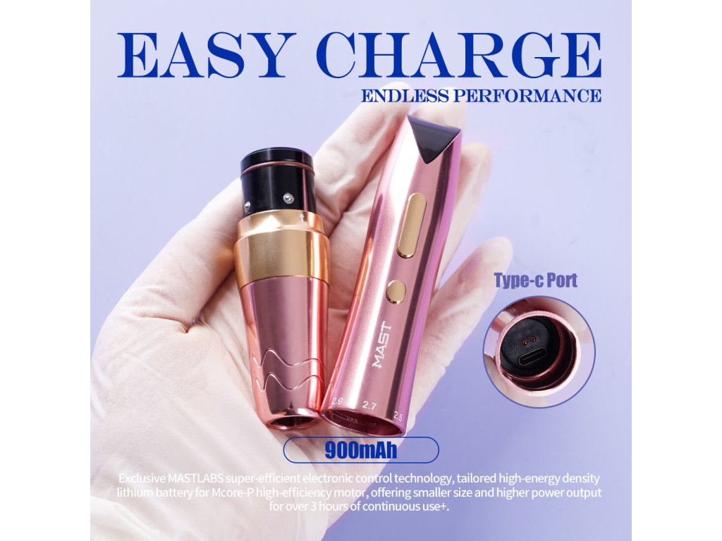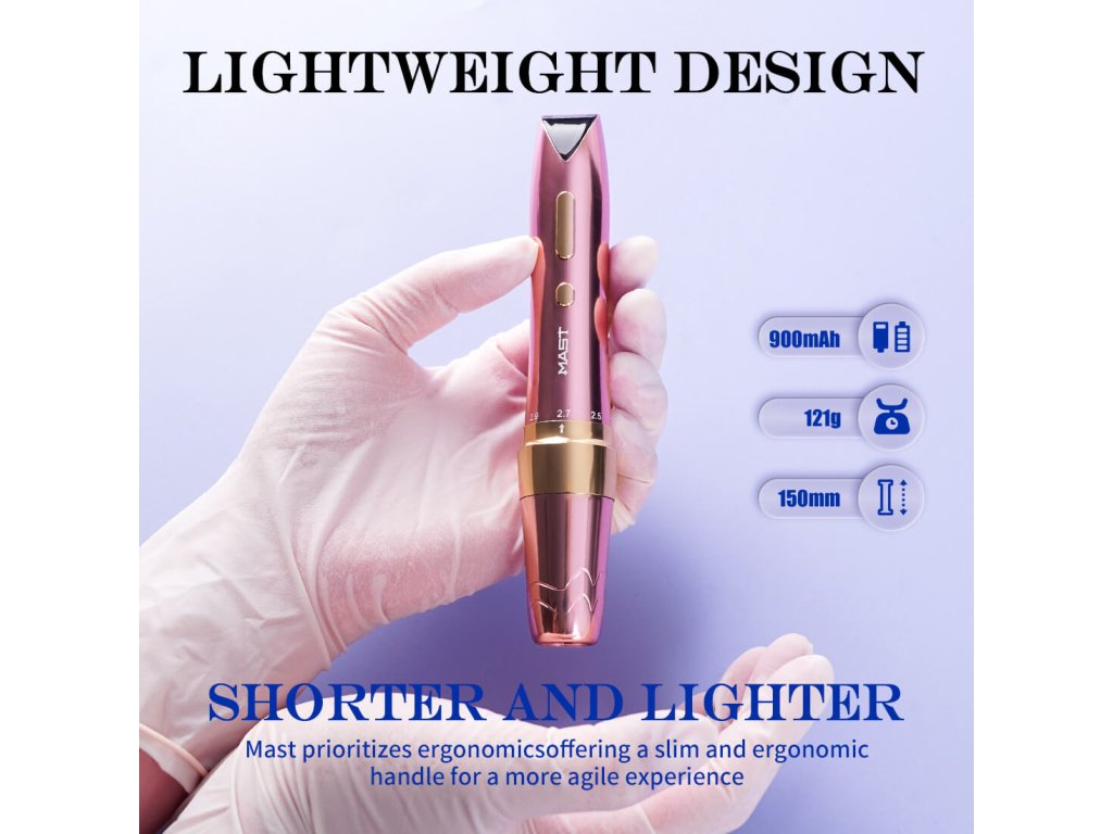 Mast P60 to elegancka, wszechstronna, ergonomiczna i zaawansowana technologicznie maszynka do tatuażu w stylu pióra. Artyści docenią elegancką konstrukcję z zakrzywionym wyświetlaczem i antypoślizgowym uchwytem zapewniającym praktyczność i estetykę.