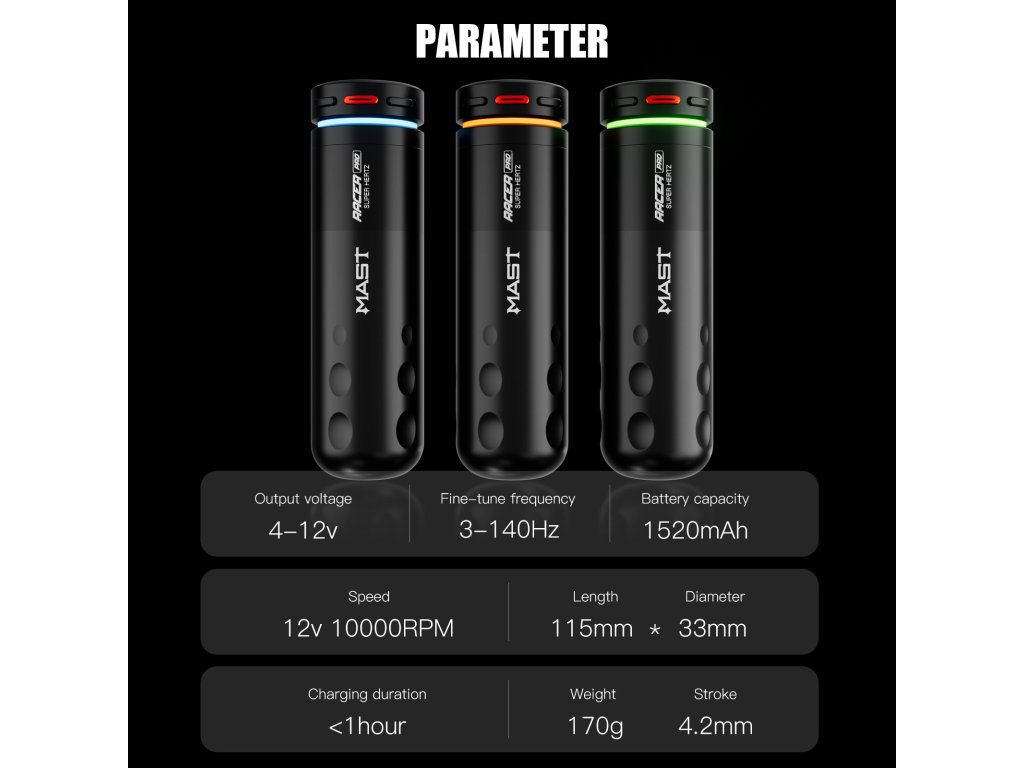Dragonhawk Mast Racer Pro Wireless bezprzewodowa maszynka do tatuażu, czarna – skok 4,2 mm