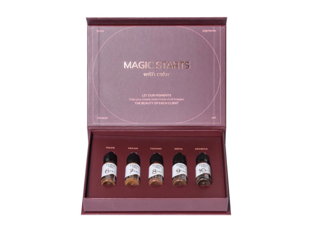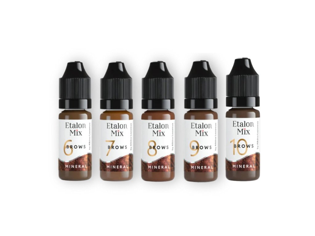 Zestaw do brwi Etalon Mix Mineral Line zapewnia wyjątkową stabilność koloru, który z czasem równomiernie blaknie, zachowując swój prawdziwy odcień. Łatwiejsze w aplikacji niż tradycyjne pigmenty mineralne, gama Etalon Mix Mineral została specjalnie opracowana, aby zapobiegać przebarwieniom skóry i zapewniać pięknie wygojone rezultaty.