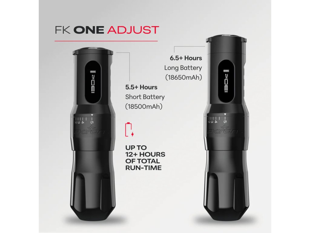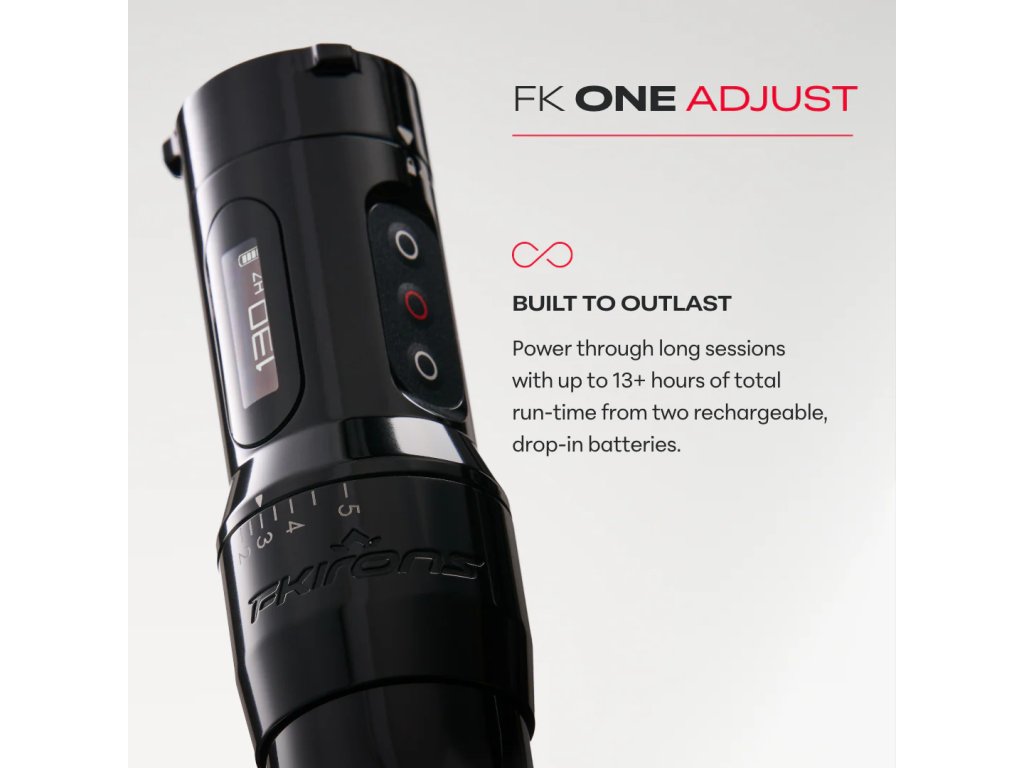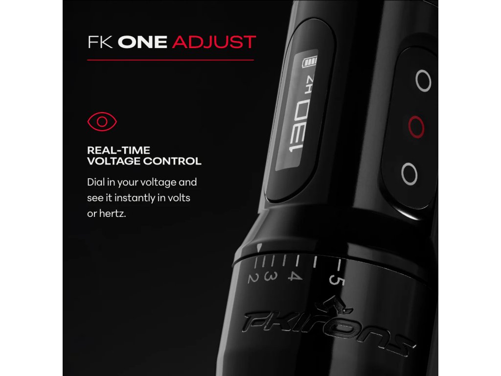 FK IRONS ONE ADJUST Bezprzewodowa maszynka do tatuażu z regulowanym skokiem 2,0 – 5,0 mm, czarna (rozpakowana)