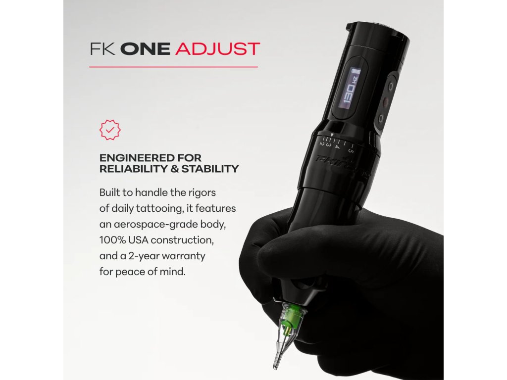 Maszynka do tatuażu FK ONE Adjust, 2 baterie, stacja dokująca, wymienne końcówki, etui ochronne.