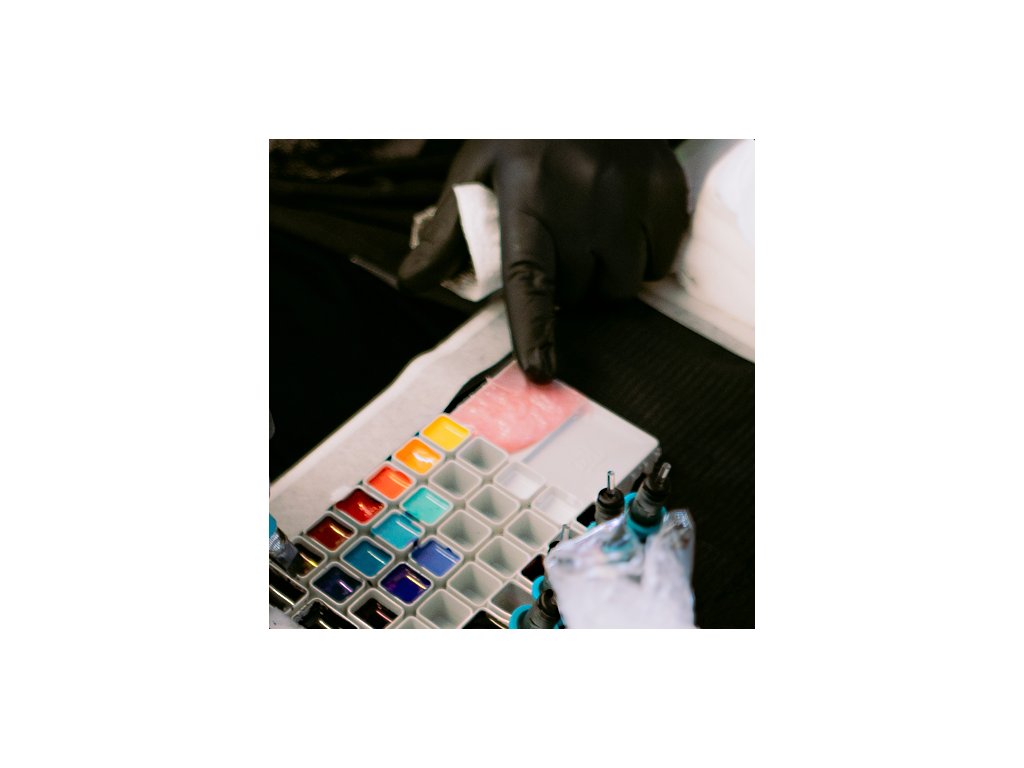 FrakButter utrzymuje wszystkie potrzebne produkty zawsze pod ręką, a jednocześnie zapobiega rozlaniu lub zabrudzeniu miejsca pracy. Każdy moduł zawiera dwie osobne przegrody, które można napełnić różnymi produktami – od klasycznej wazeliny, przez masło, aż po specjalne kremy do tatuażu.