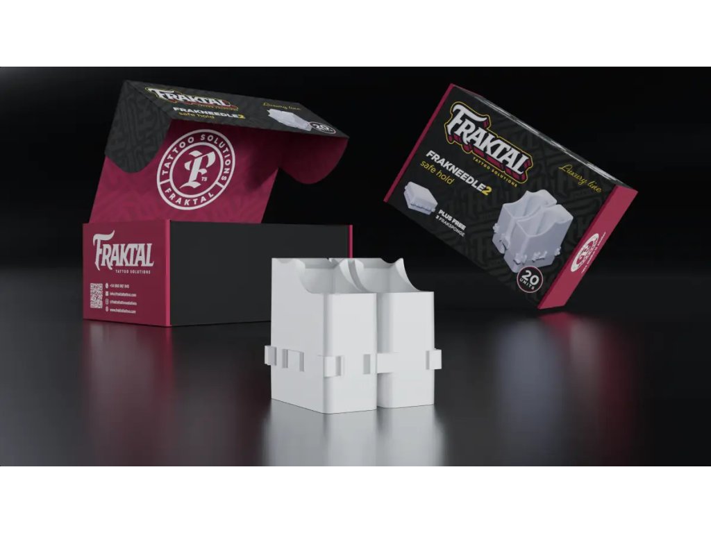 FrakNeedle2 utrzymuje stanowisko tatuażysty w czystości, porządku i bezpieczeństwie. Każdy element wykonany jest z wytrzymałego plastiku i zawiera dwie specjalnie uformowane komory do przechowywania cartridge. Zapewnia to stabilne podparcie i minimalizuje ryzyko przewrócenia lub zanieczyszczenia.