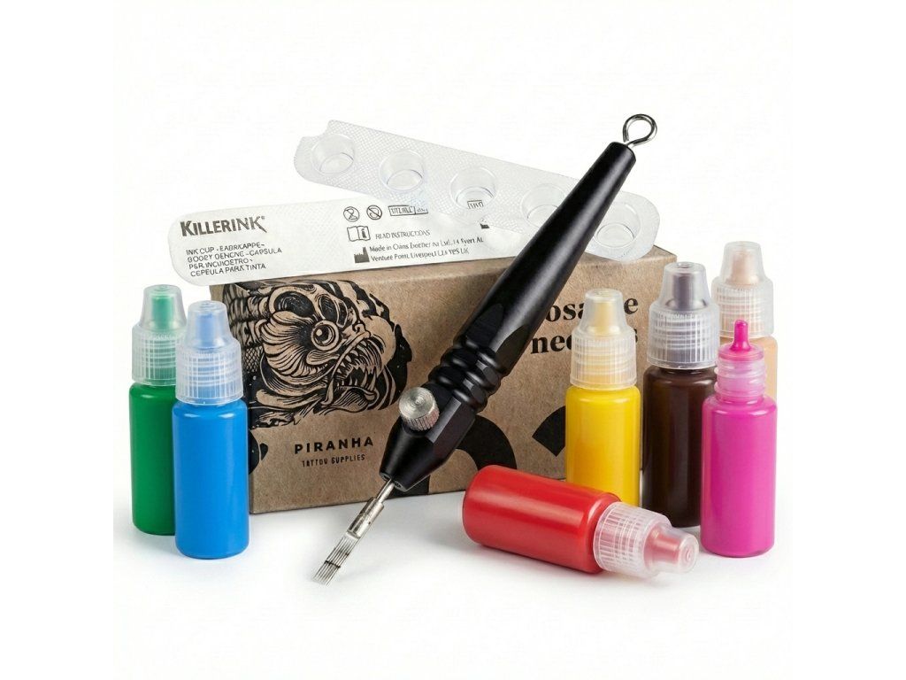 Kompaktowy zestaw: W 1 opakowaniu znajdziesz podstawowe wyposażenie do pracy handpoke.