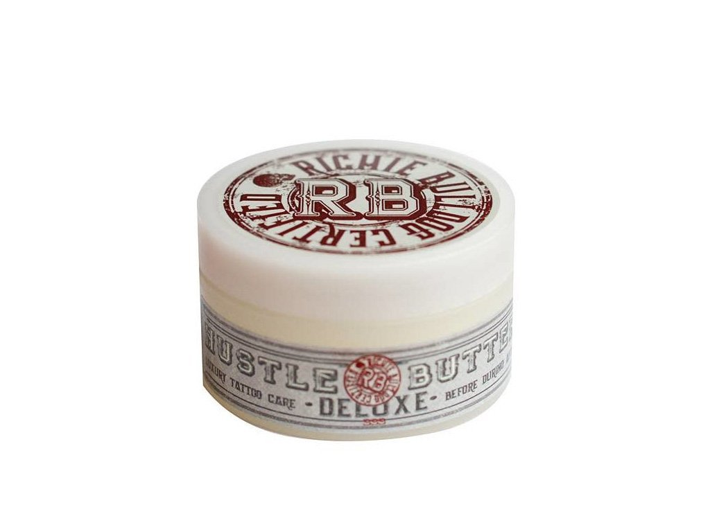Hustle Butter to w 100% naturalny, wegański produkt przeznaczony do pielęgnacji skóry przed tatuowaniem, a także do pielęgnacji nowych tatuaży, aby zachować intensywność kolorów. Dzięki zawartości aloesu wygładza skórę i ułatwia wnikanie barwników, zmniejsza zaczerwienienia i krwawienie. Zawartość masła mango ma również działanie gojące i zapewnia głębokie nawilżenie.