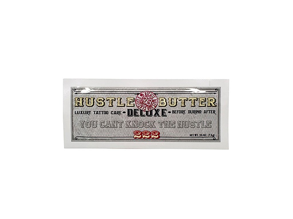 Hustle Butter to w 100% naturalny, wegański produkt przeznaczony do pielęgnacji skóry przed tatuowaniem, a także do pielęgnacji nowych tatuaży, aby zachować intensywność kolorów. Dzięki zawartości aloesu wygładza skórę i ułatwia wnikanie barwników, zmniejsza zaczerwienienia i krwawienie. Zawartość masła mango ma również działanie gojące i zapewnia głębokie nawilżenie.