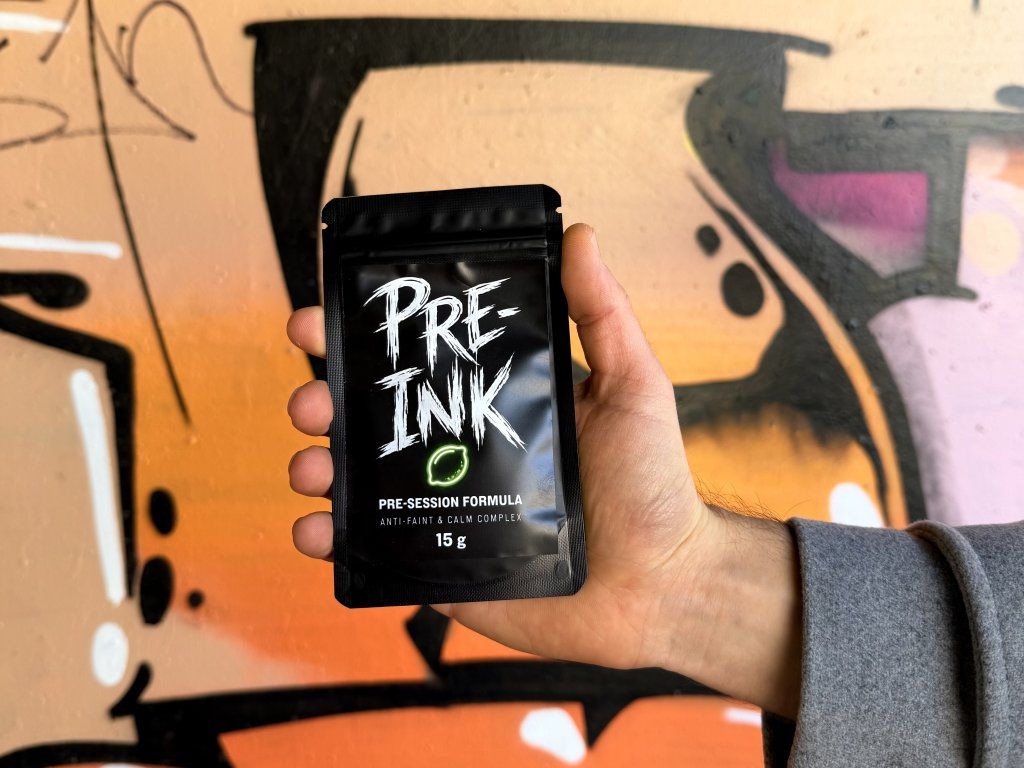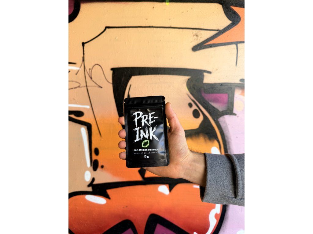 Ink Recovery Pre-Ink to suplement diety do stosowania przed wykonaniem tatuażu w praktycznym opakowaniu 15 g. Produkt należy rozpuścić w wodzie i zażyć 20–30 minut przed rozpoczęciem sesji tatuowania.