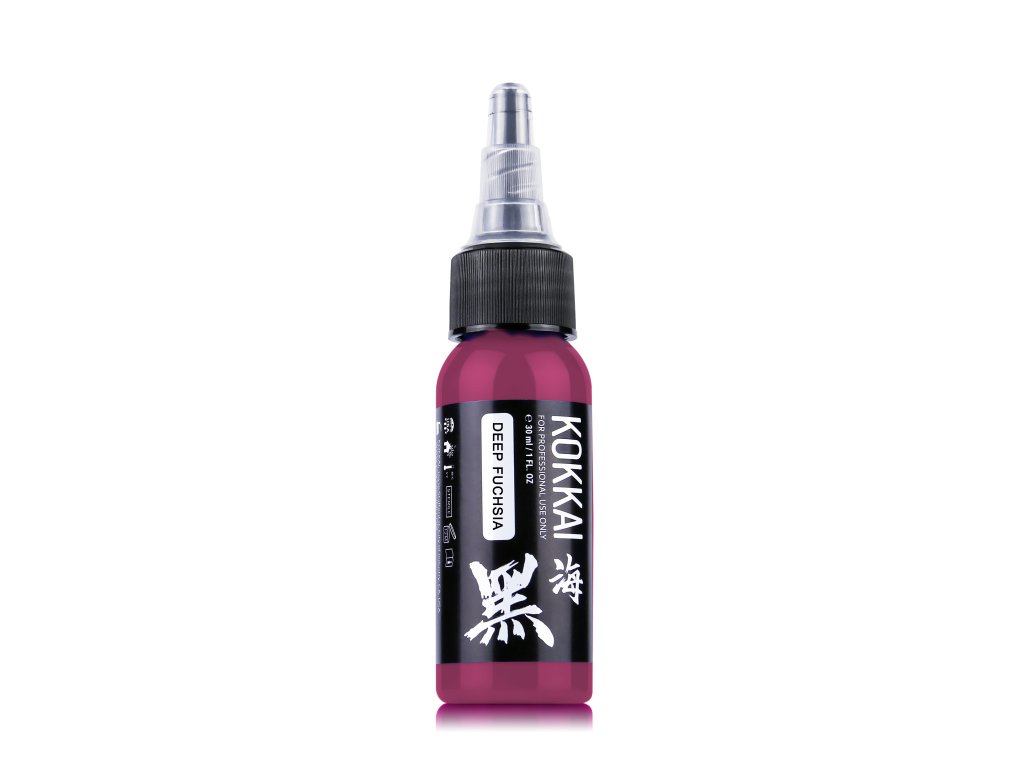 Kokkai Sumi Inks Deep Fuchsia Tattoo Ink łączy w sobie wiekowe japońskie techniki produkcji tuszu sumi z nowoczesną produkcją tuszu do tatuażu, co skutkuje pigmentem, który oferuje zarówno głębię, jak i precyzję.