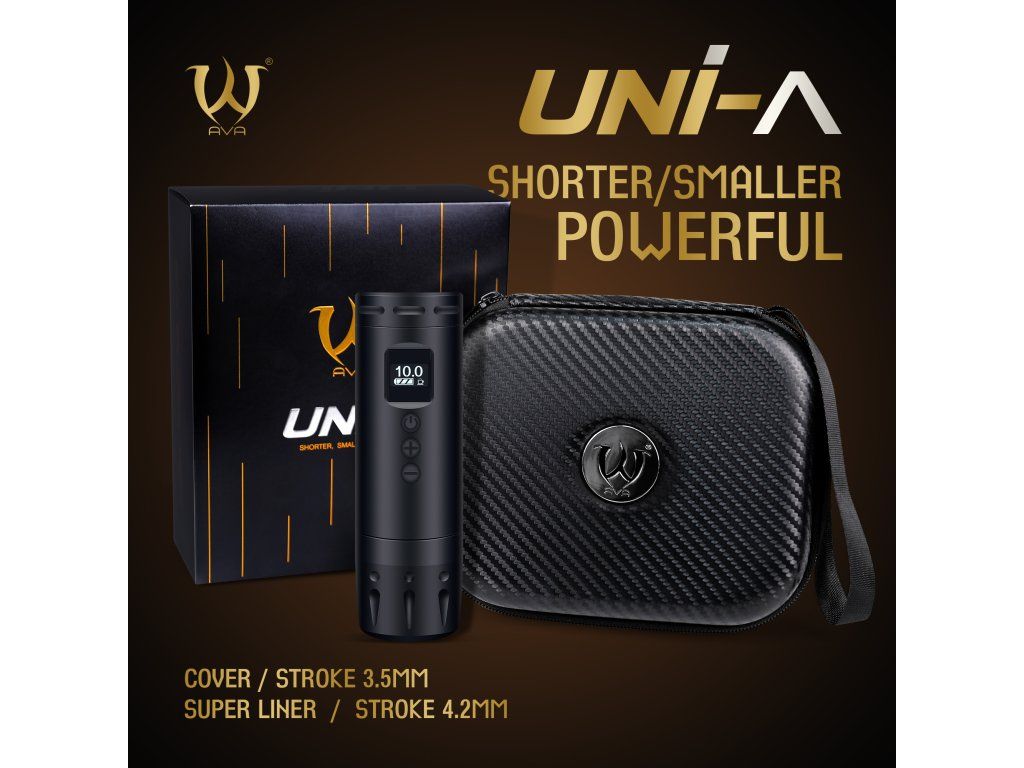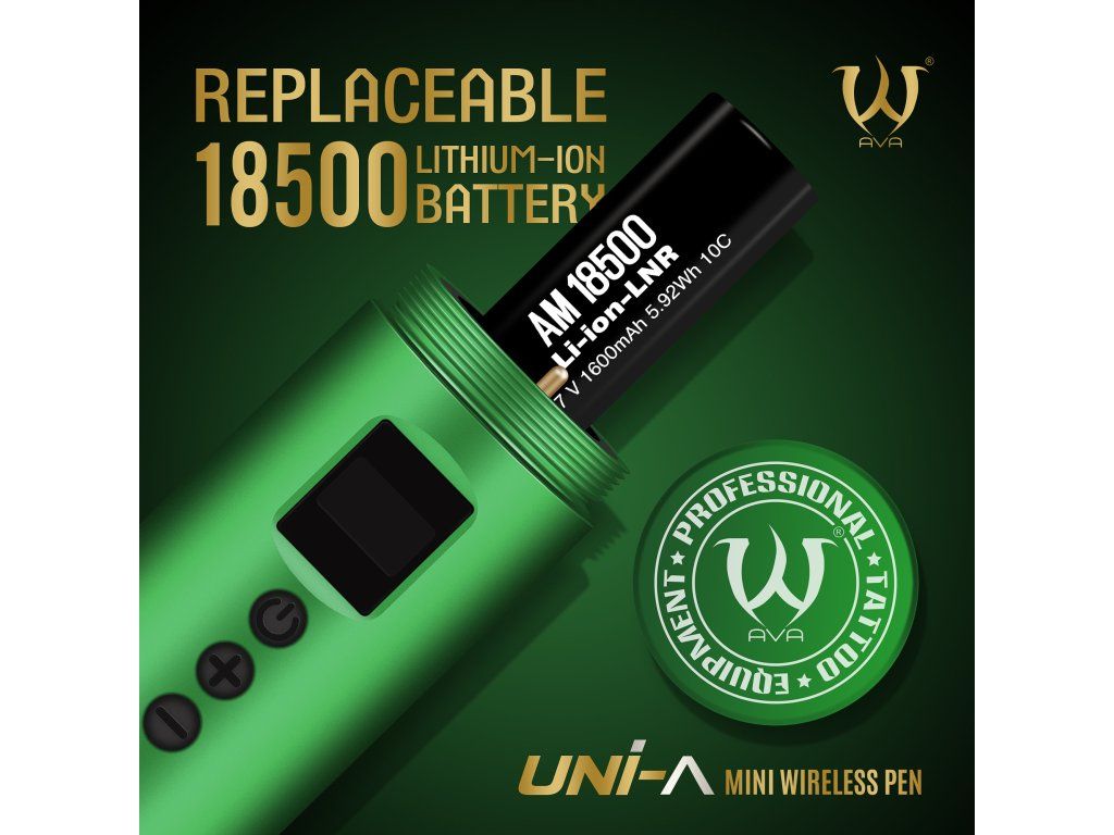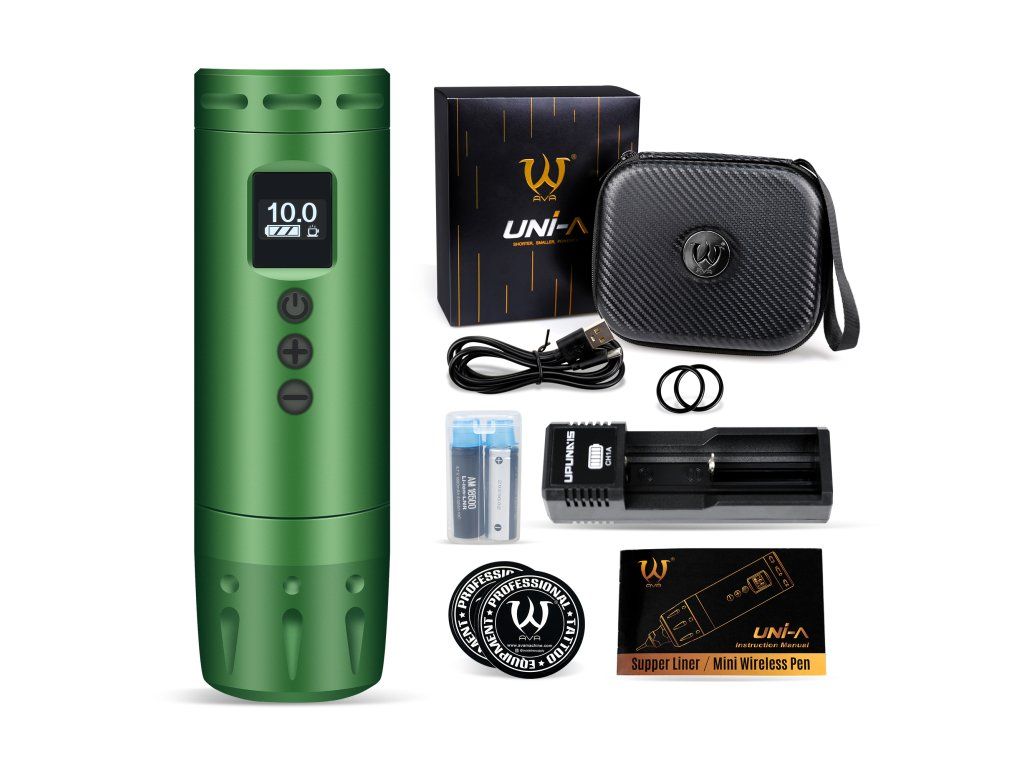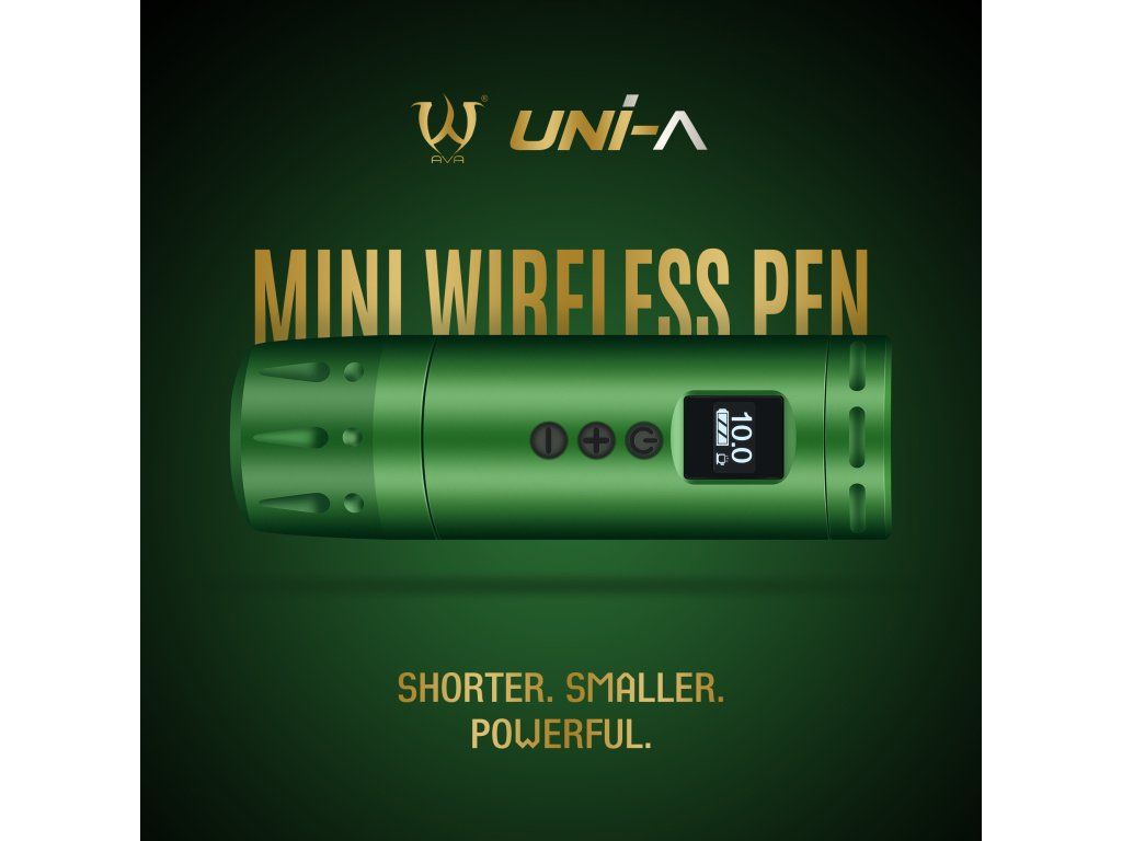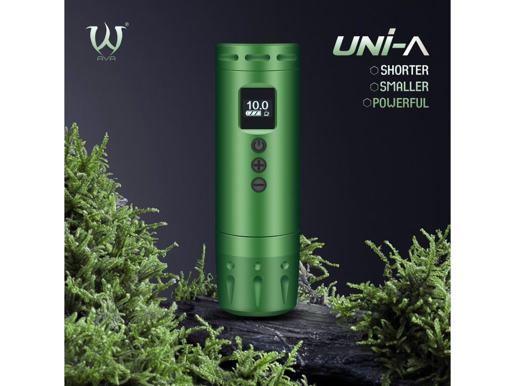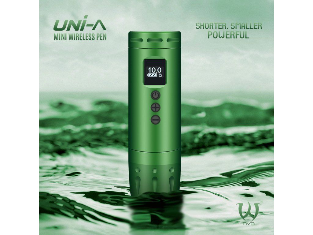 AVA UNI A w zielonym designie ze skokiem 4,2 mm łączy w sobie kompaktowe rozmiary, niską wagę i praktyczną pracę na baterii. Jest odpowiedni dla tatuatorów poszukujących mobilnego urządzenia o większej czułości.