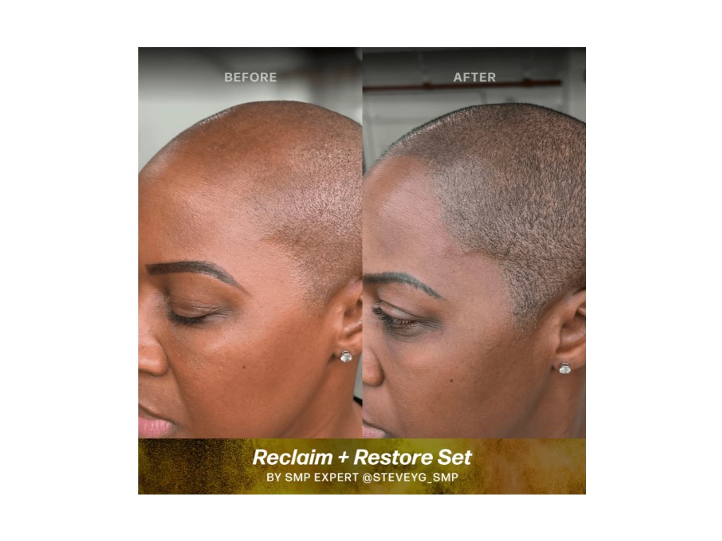 Zestaw Perma Blend Luxe Restore, wyprodukowany we współpracy ze Stevey G, zawiera 6 pigmentów do mikropigmentacji skóry głowy, które są zgodne z najnowszymi przepisami REACH. Pigmenty te zostały specjalnie zaprojektowane do zabiegów zagęszczania włosów na skórze głowy u klientów płci męskiej i żeńskiej i są dostarczane z tabelą kolorów, która pomaga oszacować wybór odcienia dla SMP.