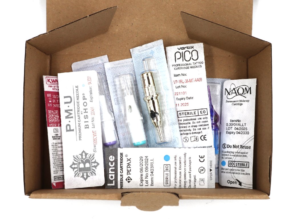 Idealne do testowania nowych igieł, porównywania wydajności różnych marek i szybkiego uzupełniania zapasów w studiu. Opakowanie Mystery Box zapewni różnorodność, której nie oferuje zwykłe opakowanie i ułatwi wybór igieł do różnych typów PMU.