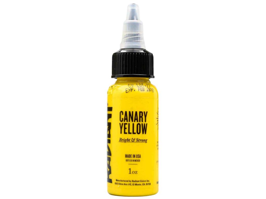Radiant Ink Canary Yellow to tusz do tatuażu z gamy kolorystycznej marki Radiant Ink. Produkt przeznaczony do stosowania podczas tatuowania maszynką. Konsystencja tuszu odwiada standardowym płynnym pigmentom do tatuażu jednorazowego w specjalnych studiach.