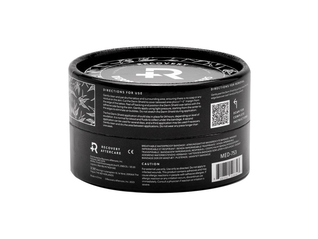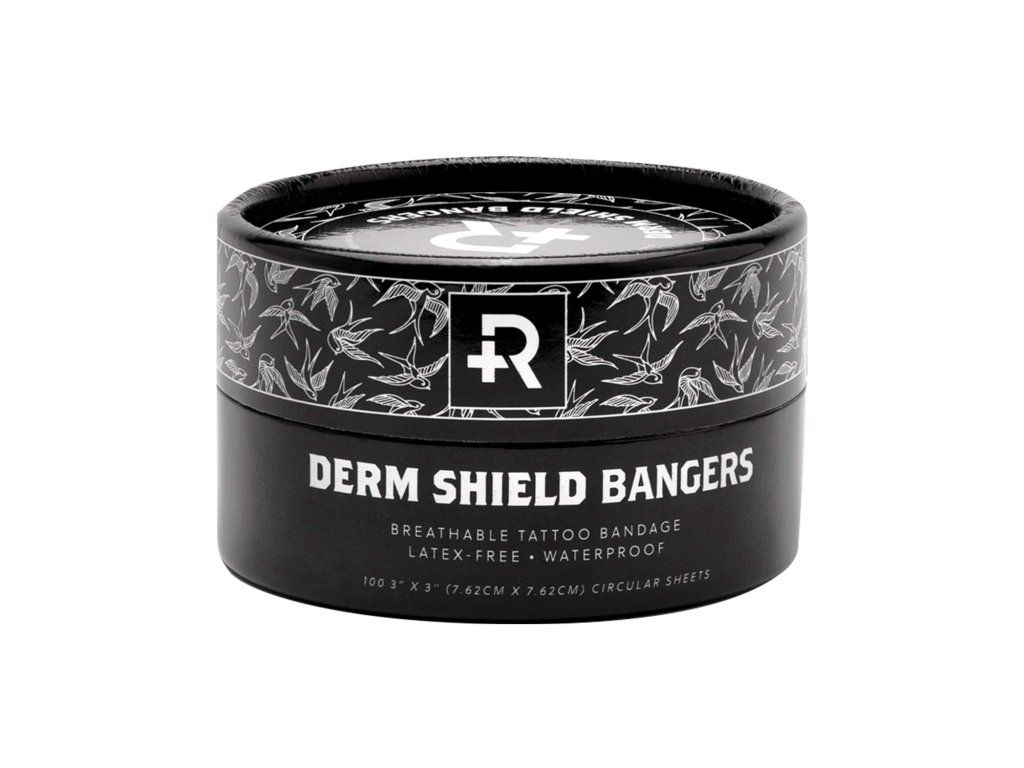 Recovery Aftercare Derm Shield Bangers to okrągła folia ochronna przeznaczona do zakrywania mniejszych tatuaży. Jest odpowiednia wszędzie tam, gdzie wymagana jest szybka aplikacja, dokładne pokrycie i wygoda noszenia bez niepotrzebnie dużego formatu.