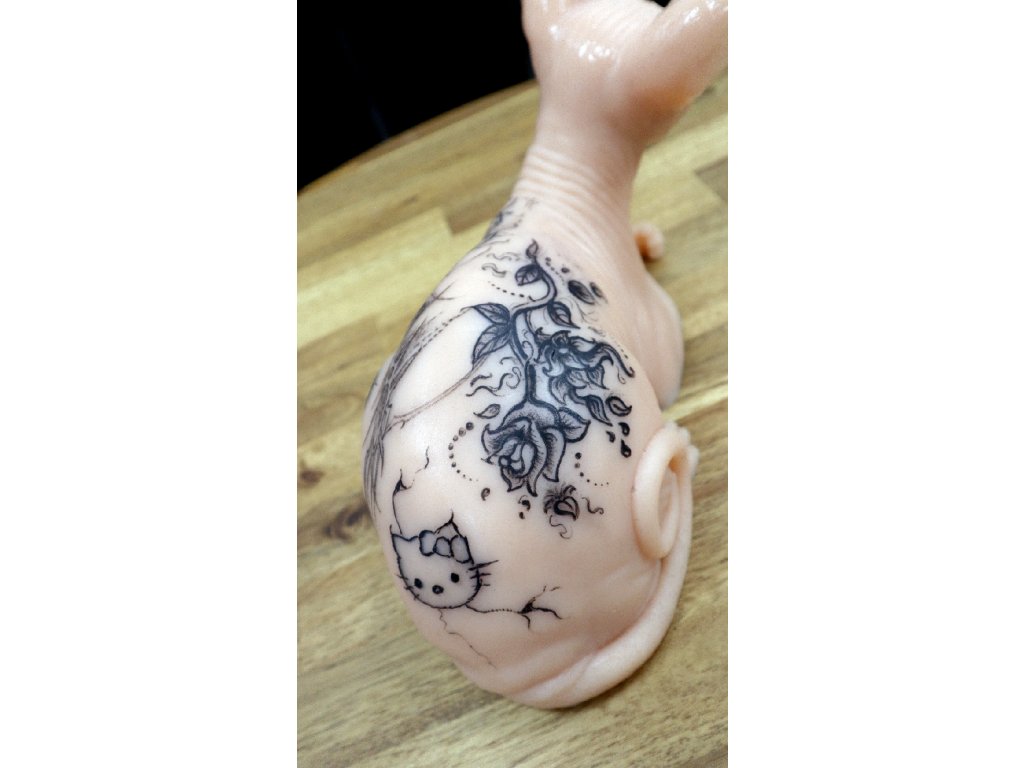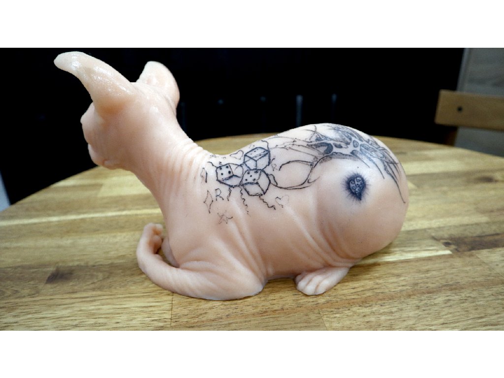 Prawdziwy rozmiar silikonowego kota do treningu tatuażu.