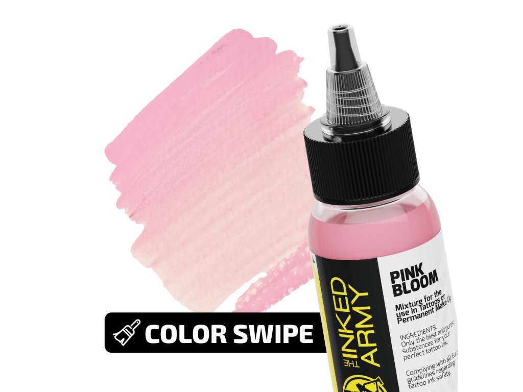 THE INKED ARMY Pink Bloom to różowa róża z serii wyjątkowych tuszy do tautów czerwonych w Niemczech. Oferuje charakterystyczny, stabilny odcień, który wyróżnia się zarówno w pełnych wypełnieniach, jak i w drobnych szczegółach.