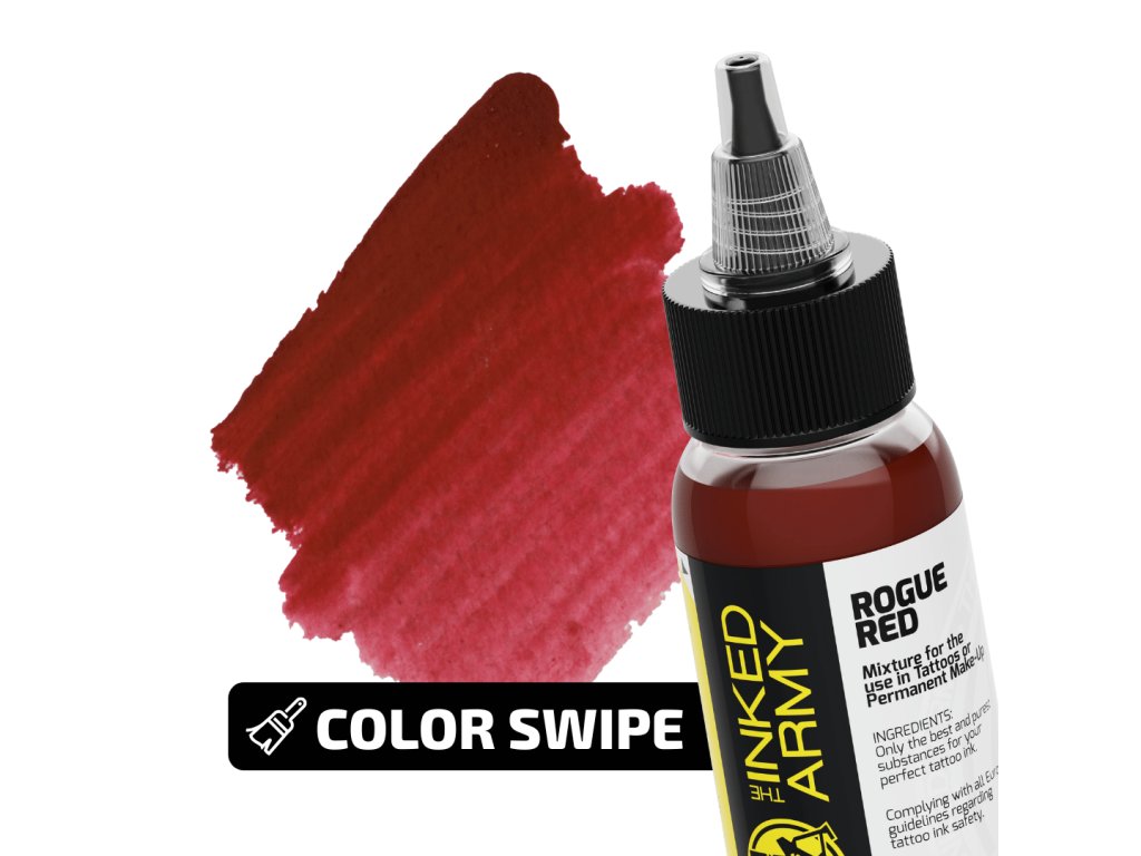 THE INKED ARMY Rogue Red to potężna, energetyczna czerwień z serii wyjątkowych tuszy do tatuazu pierwotnych w Niemczech. Oferuje pełny i stabilny odcień, który zachowuje swoją wyrazistość podczas wypełniania i precyzyjnej pracy.