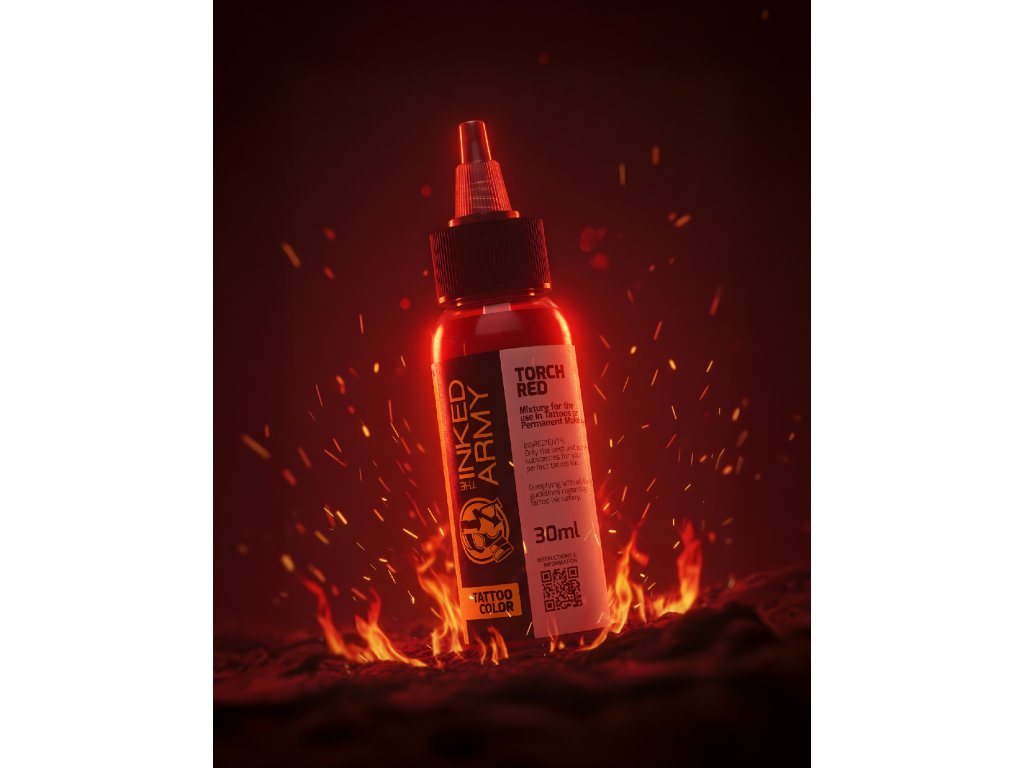 THE INKED ARMY Torch Red to intensywny, jasny odcień inspirowany kolorem płomienia. Oferuje charakterystyczne, jasne odcienie o wysokiej intensywności barw, które natychmiast przyciągają uwagę i dodają dynamiki.