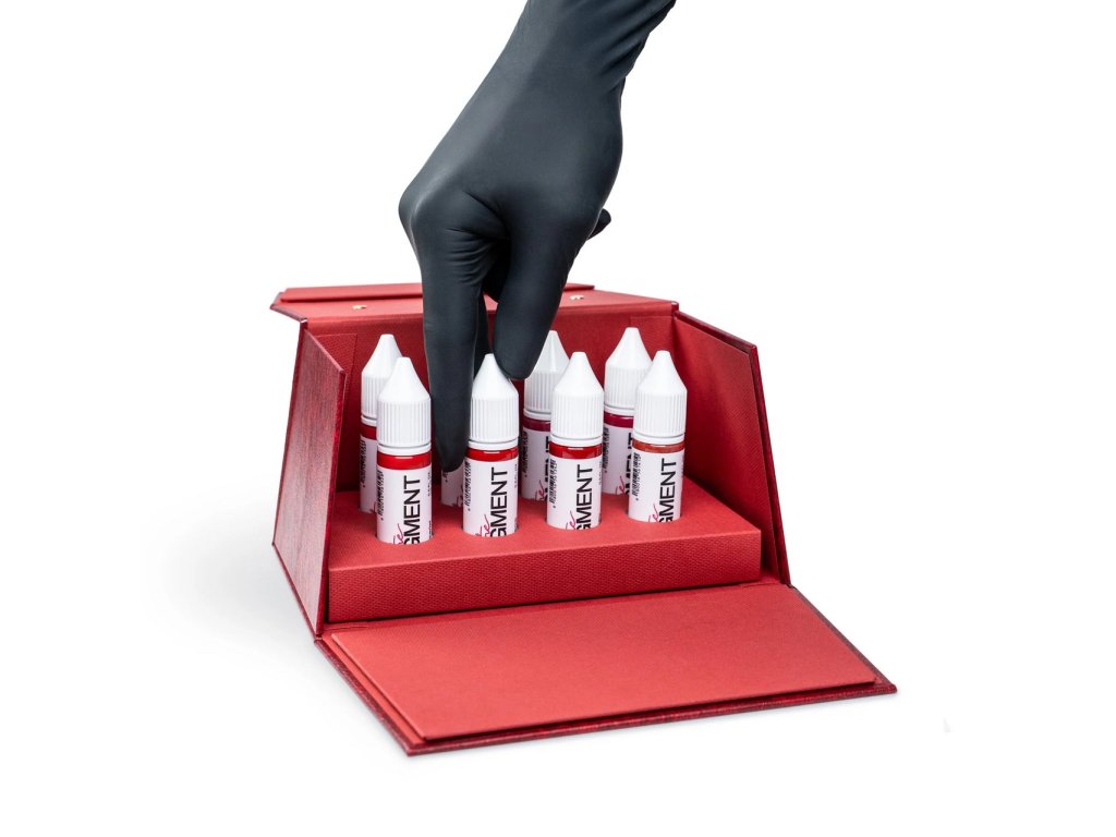 Kolekcja Pigment PMU Lip Collection 8 x 15 ml oferuje zrównoważoną paletę odcieni czerwieni, różu i neutralnych, przeznaczoną dla każdego rodzaju cery i koloru ust. Pigmenty mają miękką, kremową konsystencję, są łatwe w aplikacji i równomiernie się wchłaniają. Nadają się zarówno do subtelnych tonów, jak i do intensywnych kolorów o intensywnym efekcie. Można je mieszać ze sobą, aby uzyskać idealny odcień, dopasowany do preferencji klientki.