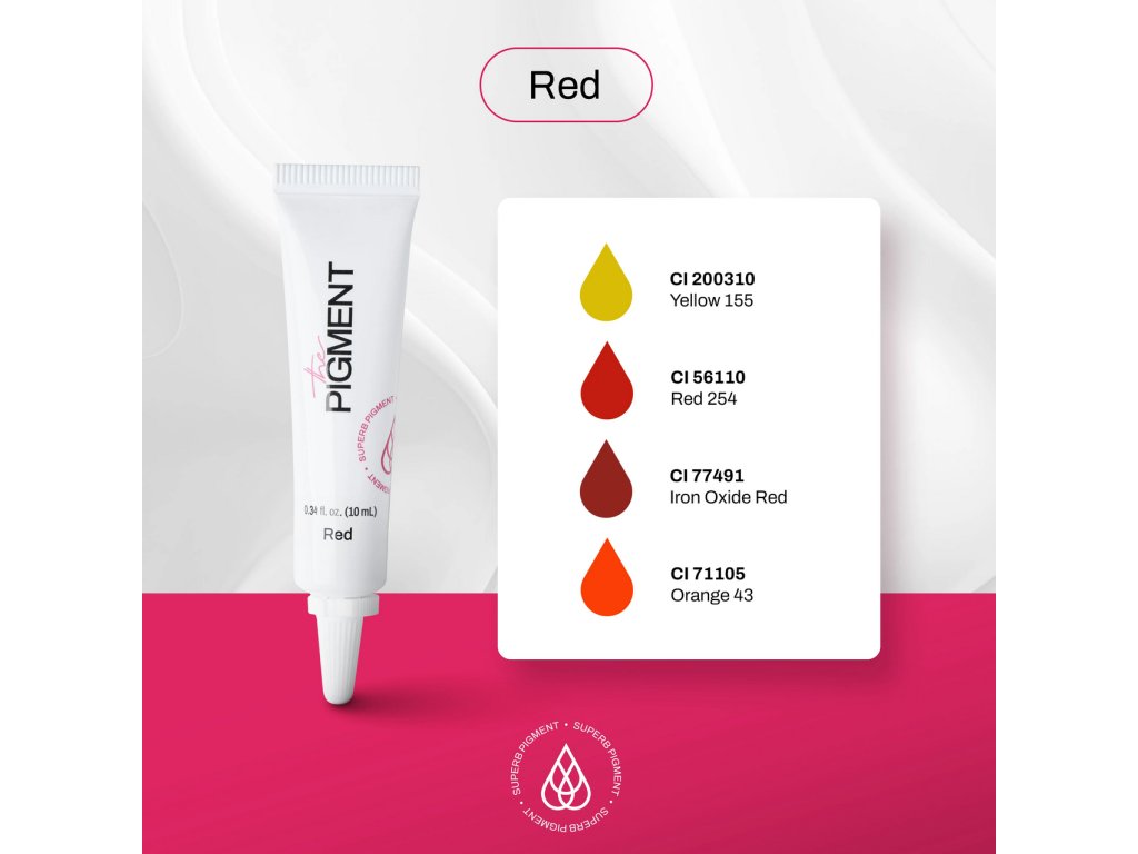 Pigment Red to kluczowy składnik w tworzeniu naturalnych, ciepłych tonów i korygowaniu niepożądanych odcieni. Można go stosować samodzielnie lub w połączeniu z innymi pigmentami, aby uzyskać pożądaną intensywność i temperaturę koloru. Jego konsystencja jest łatwa do wymieszania, równomiernie się wchłania i zapewnia czyste, stabilne gojenie.