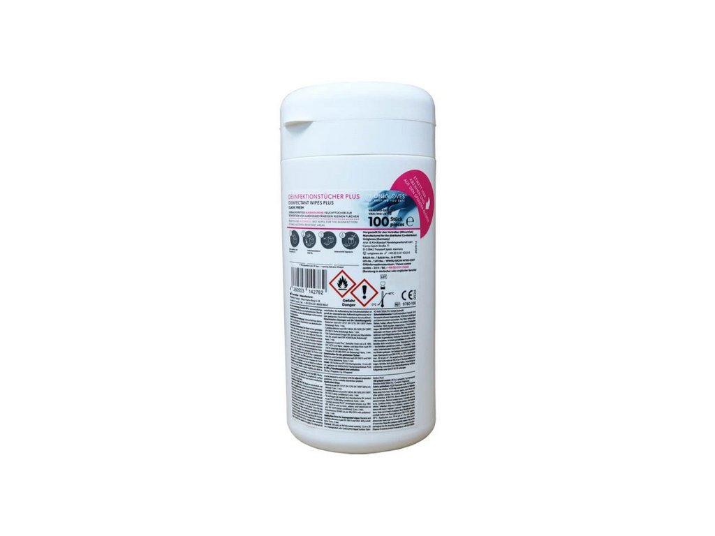 1 × zamykany pojemnik zawierający 100 chusteczek dezynfekujących