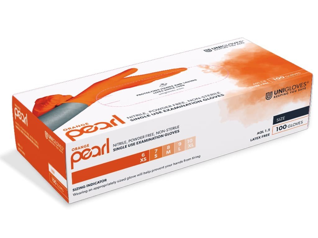 Rękawice nitrylowe Unigloves Orange Pearl łączą maksymalną ochronę, wygodę i długą trwałość podczas pracy. Wykonane są z syntetycznego nitrylu, który jest mocniejszy niż lateks, dzięki czemu lepiej chroni przed przekłuciem, rozerwaniem i wieloma chemikaliami. Brak pudru minimalizuje ryzyko podrażnień skóry, a rękawice są hipoalergiczne.
