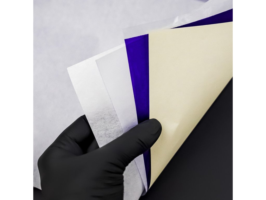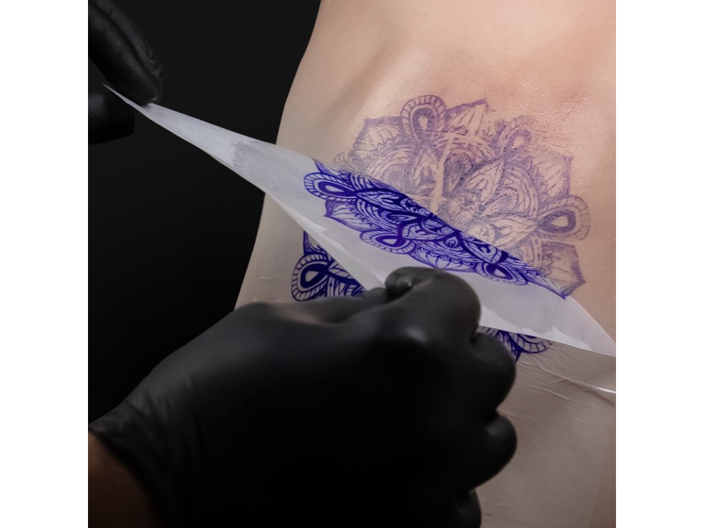 Warstwa transferowa reaguje bardzo wrażliwie na nacisk, co pomaga łatwo i precyzyjnie odwzorować nawet najdrobniejsze detale projektu. Po przeniesieniu barwnik pozostaje stabilny na skórze, jest odporny na rozmazywanie i utrzymuje się przez cały proces tatuowania bez utraty jakości.