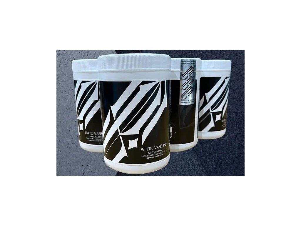 Wazelina 1000ml, biała. Plastikowy pojemnik z zakrętką. Wyprodukowano w UE.
