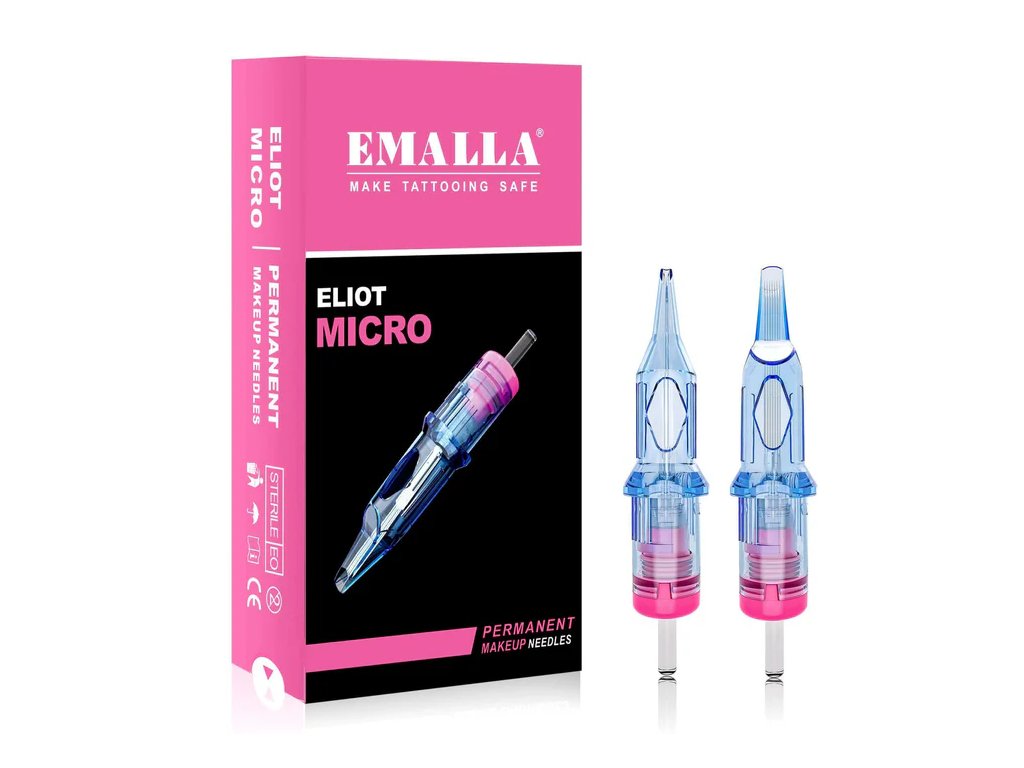 Kasety EMALLA Eliot Micro Cartridges są przeznaczone do makijażu permanentnego, gdzie wymagana jest stabilna linia o nieco łagodniejszym początku niż w przypadku wariantów o długim stożku. Średni stożek zapewnia kontrolowaną iniekcję i płynny przepływ pigmentu bez zbyt ostrego wcinania się w skórę.