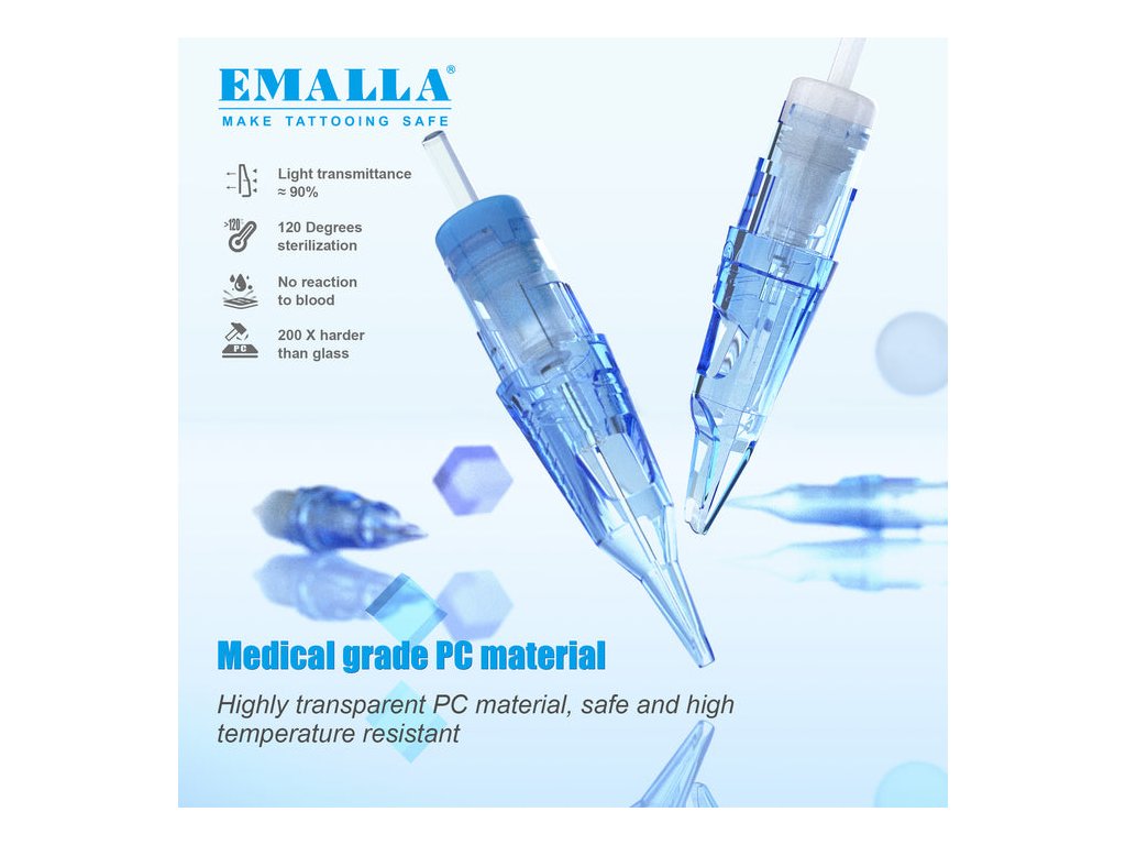 Igły wykonane są ze stali nierdzewnej klasy medycznej. Kolorowe końcówki umożliwiają szybką orientację między typami kartridży podczas pracy. Każdy wkład jest pakowany osobno i sterylizowany gazem EO.